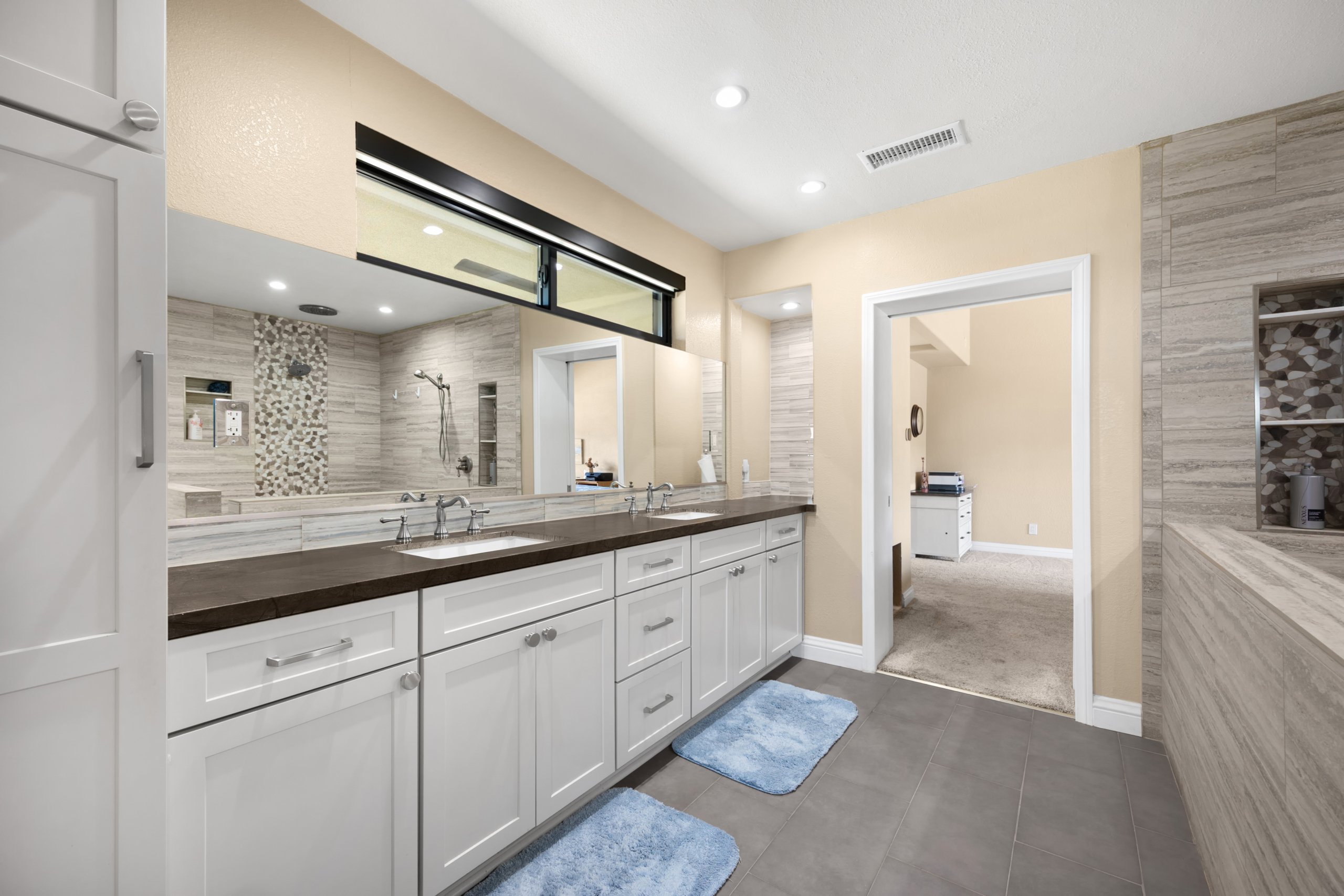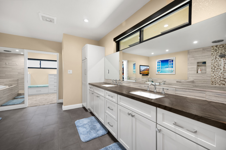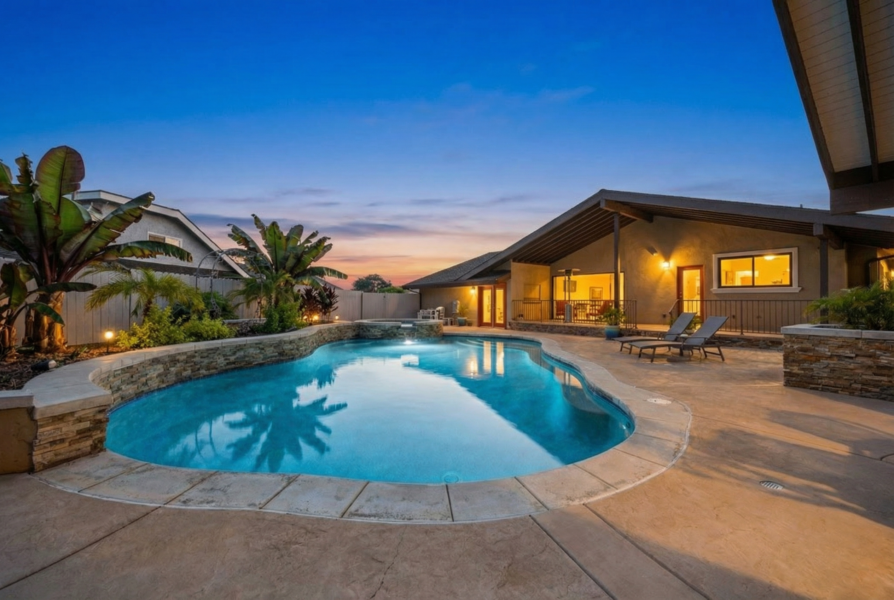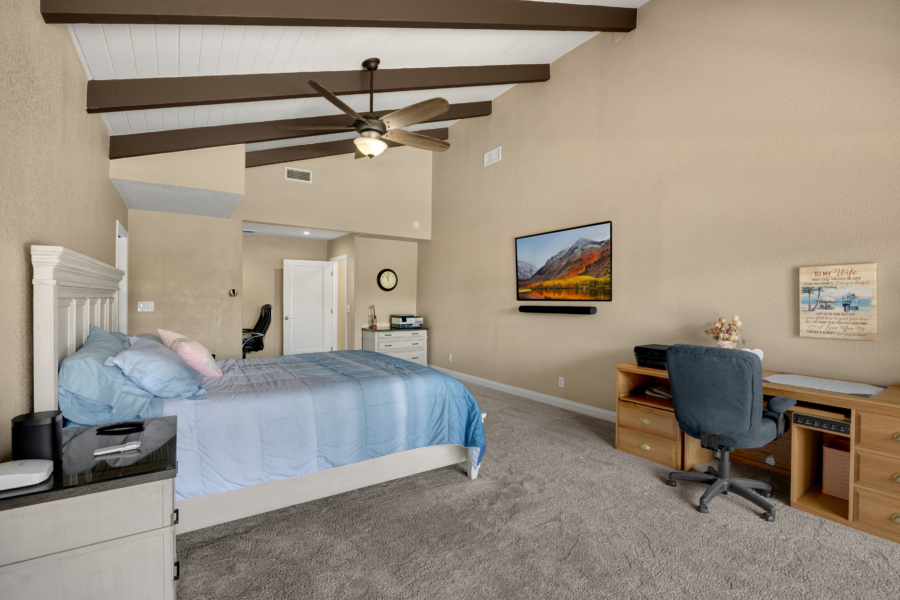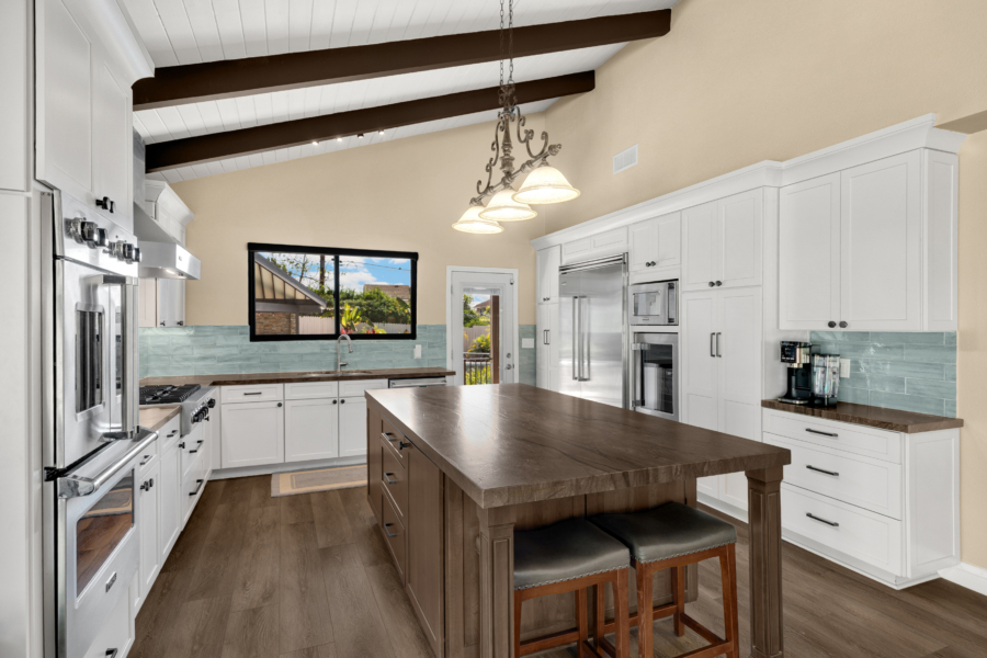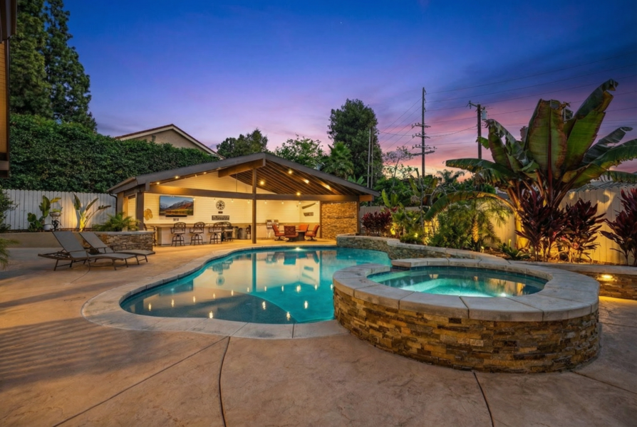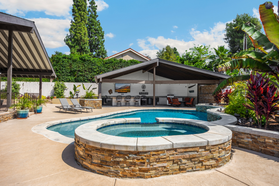 Tucked at the end of a quiet Brea cul‑de‑sac, this GORGEOUS custom single‑story residence offers 5 bedrooms, 4 bathrooms, 3,274 sq ft, and an attached four‑car garage. Completely reimagined in 2023—torn down to two walls and expanded by roughly 1,500 sq ft—it blends modern comfort with thoughtful design. Double doors open to an inviting entry, with a convenient three‑quarter bathroom immediately to the right. From here, you step into the living room, where a vaulted ceiling with exposed beams frames a dramatic 25‑ft LaCantina five‑panel multi‑slide door that disappears into the wall, creating seamless indoor‑outdoor living. Motorized shades add ease and ambiance. The dining area enjoys the view to the back patio and sits between the living room and kitchen, keeping gatherings connected. The kitchen features Brazilian granite counters, custom cabinetry, a large island, and Viking appliances including a drink fridge and double oven. The primary suite feels like a retreat, offering its own 15‑ft three‑panel multi‑slide door, a stunning bathroom with a soaking tub, a huge shower with three shower heads, and an oversized walk‑in closet with built‑in organizers. Down the hall are three guest bedrooms, a full bathroom, and a laundry room with a sink and cabinetry. The mother‑in‑law suite provides exceptional flexibility with its separate entrance, generous layout, handicap accessibility, and private bathroom. The backyard is built for year‑round enjoyment with a PebbleTec saltwater pool and spa, a 40‑ft by 18‑ft peaked patio cover, and an outdoor kitchen featuring a custom 12‑ft bar, built‑in BBQ, and an 85″ Samsung TV with sound bar. Additional highlights include RV parking, a built‑in speaker system throughout the home and yard, a 4‑zone dual HVAC system, underground utilities, an exterior drainage system, and vaulted ceilings in all living areas and bedrooms. Nearby are award‑winning schools, great restaurants, and abundant shopping options. Don’t miss this one!