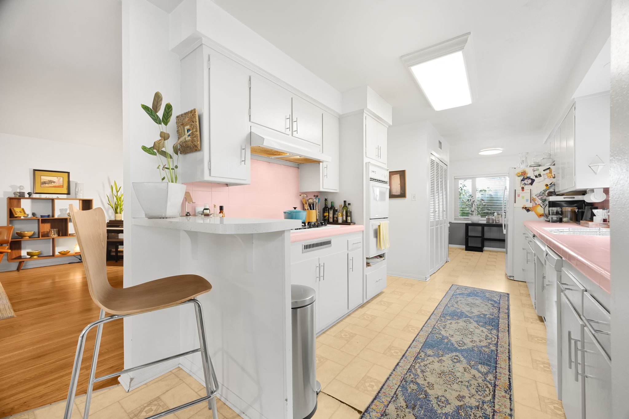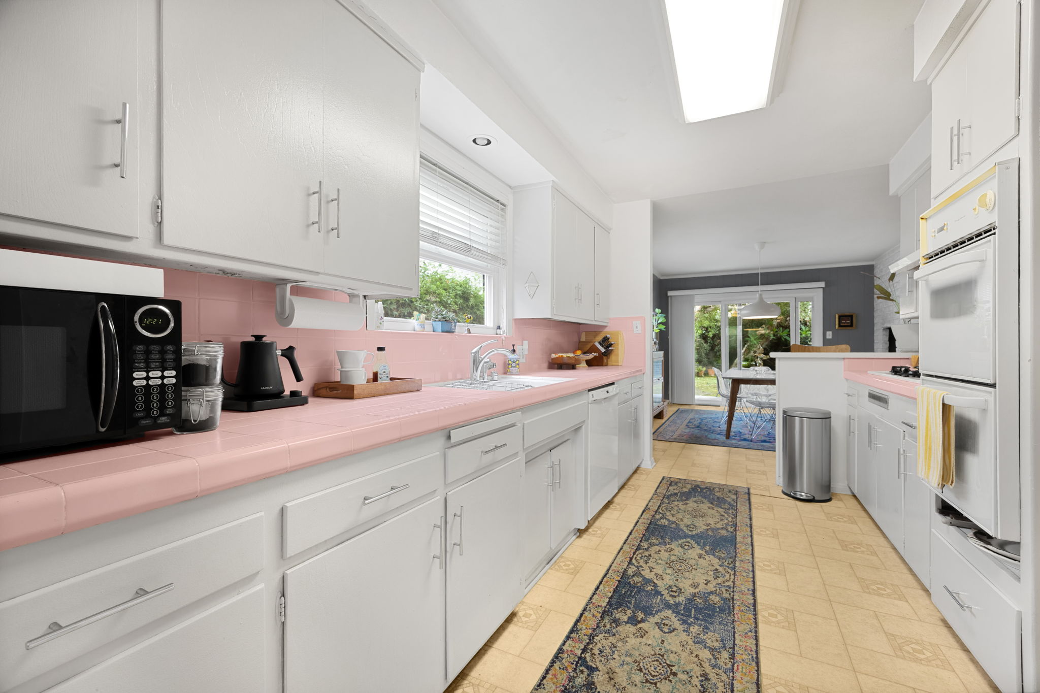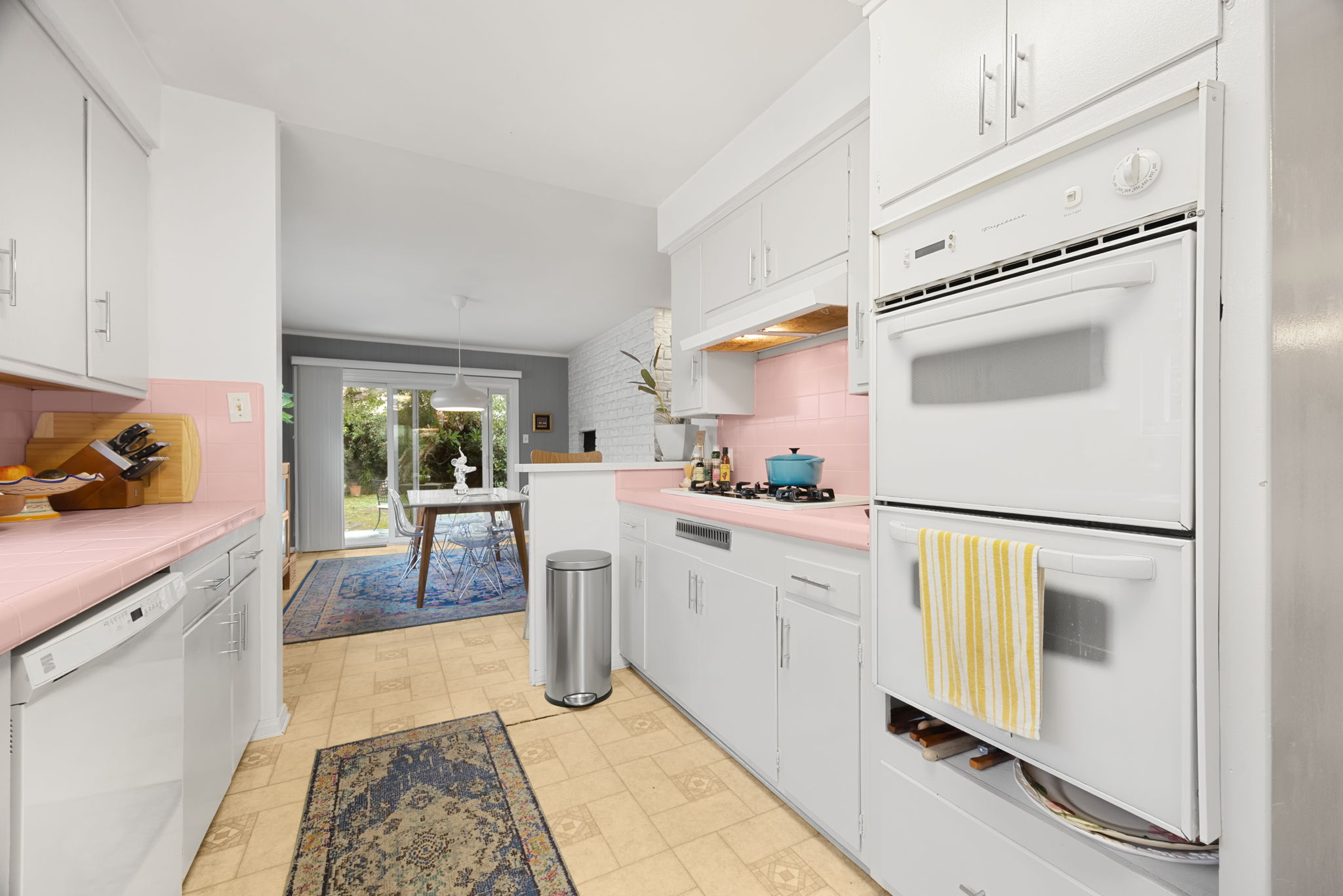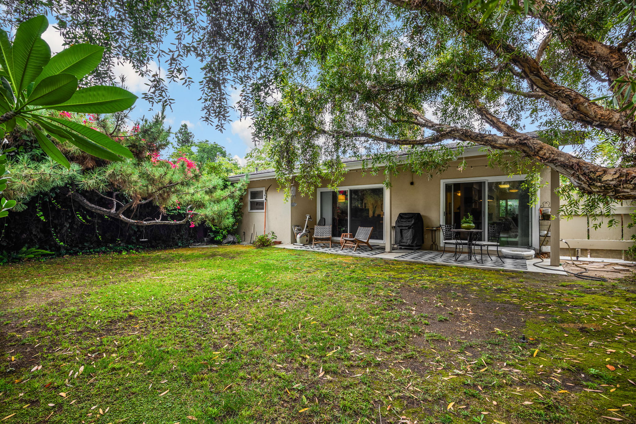 Nestled on a peaceful cul-de-sac in Valley Village, this charming single-level home offers 3 bedrooms, 2 bathrooms, and 1,727 sq ft of comfortable living space. Built in 1958, it features an attached two-car garage and a layout designed for ease and flow. Step through the front door and into the inviting living room, where rich wood flooring stretches across much of the home, setting a warm and cohesive tone. Just beyond, the formal dining area awaits—anchored by a cozy fireplace and illuminated by natural light pouring through a glass sliding door that opens to the backyard. The kitchen, conveniently located adjacent to the dining area, is equipped with ample cabinetry and a double oven, perfect for culinary enthusiasts. A quaint dinette area sits nearby, offering a lovely view of the front yard and a relaxed spot for morning coffee. Tucked between the kitchen and dinette is a discreet laundry closet, adding everyday practicality. Down the hall, two guest bedrooms provide restful retreats, each outfitted with ceiling fans for added comfort. A full guest bathroom serves these rooms, offering functionality and style. The primary bedroom suite is generously sized, featuring a walk-in closet and its own en-suite 3/4 bathroom with a shower, creating a private haven within the home. Step outside to discover a tranquil backyard framed by lush landscaping that enhances privacy. A covered patio invites outdoor dining, lounging, or entertaining in a serene setting. Located near award-winning schools, popular restaurants, and abundant shopping options, this home combines quiet residential living with convenient access to everything Valley Village has to offer.