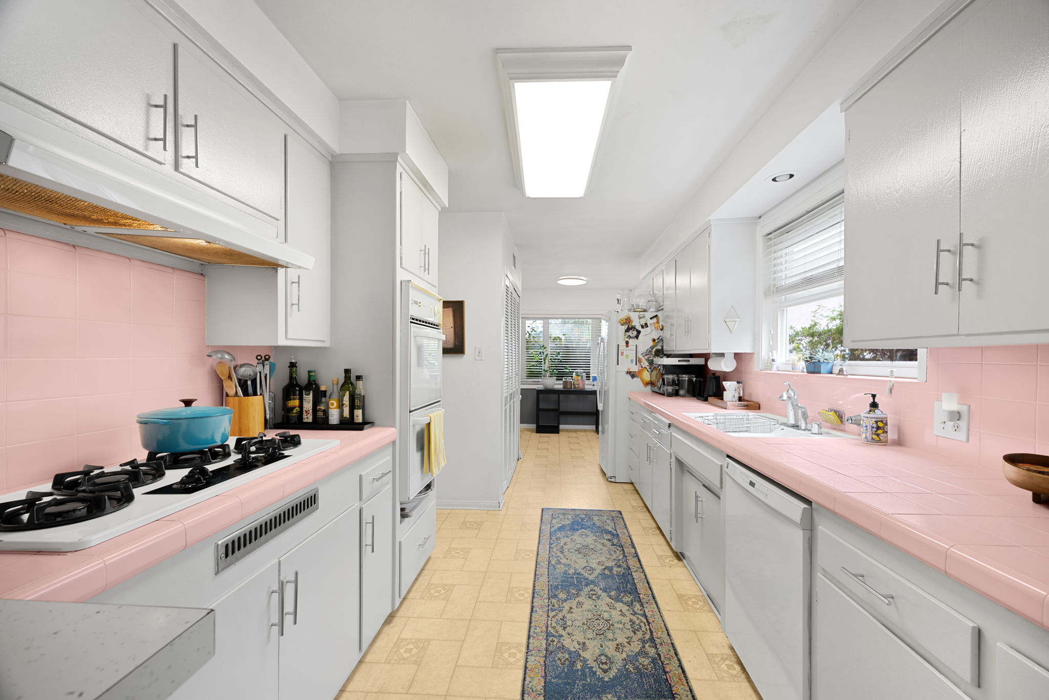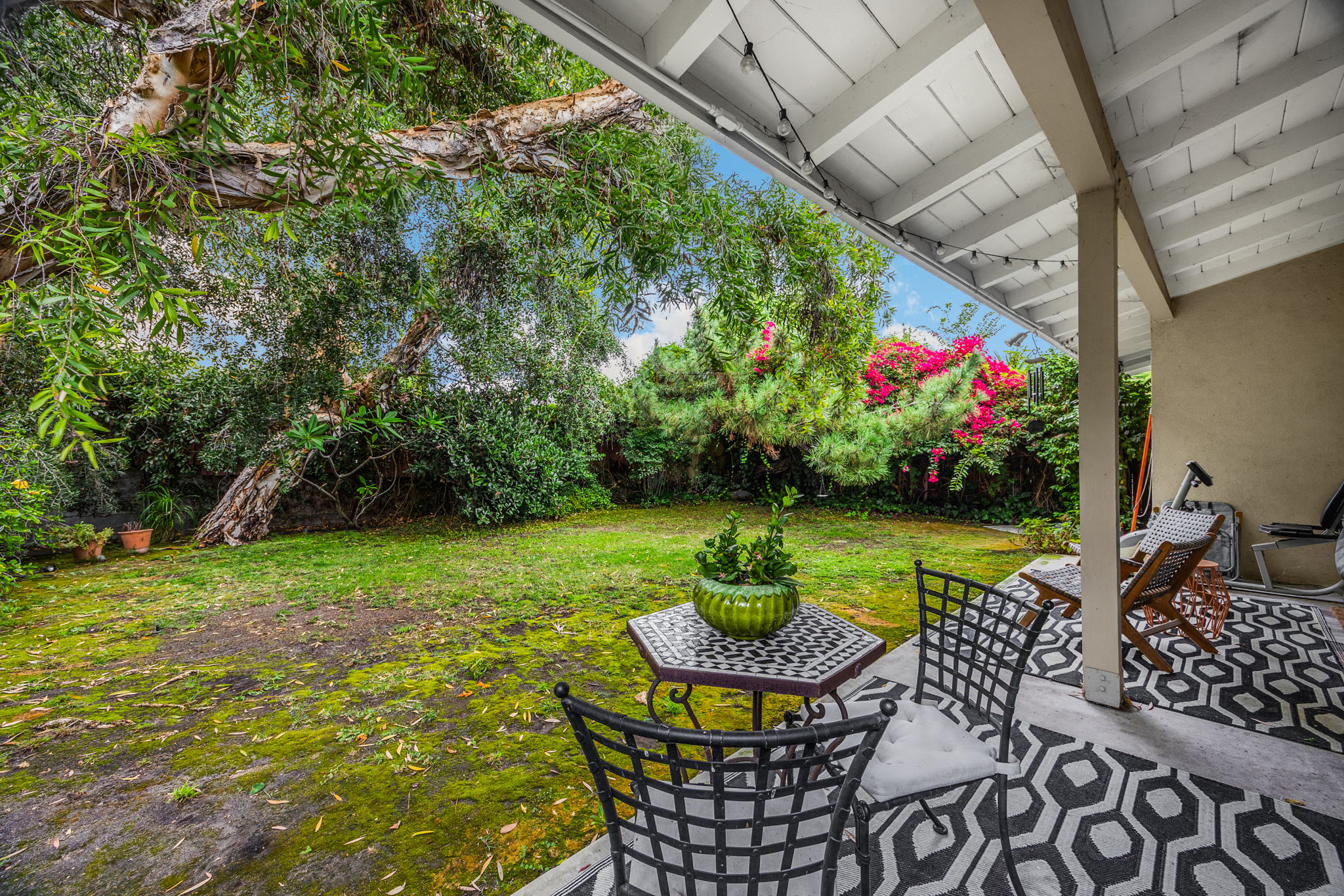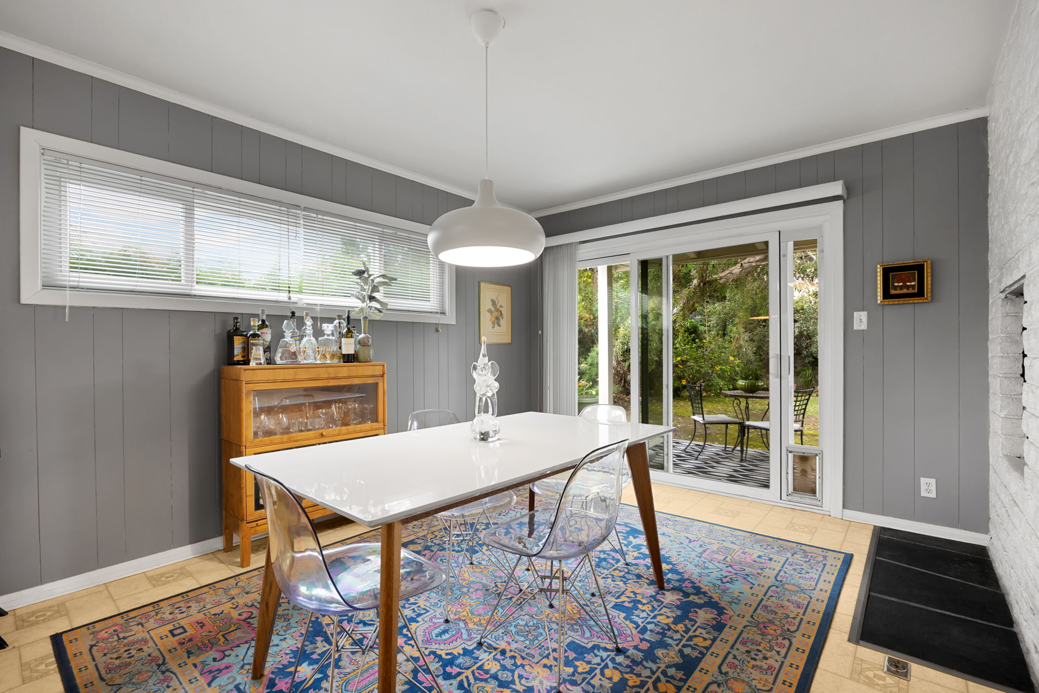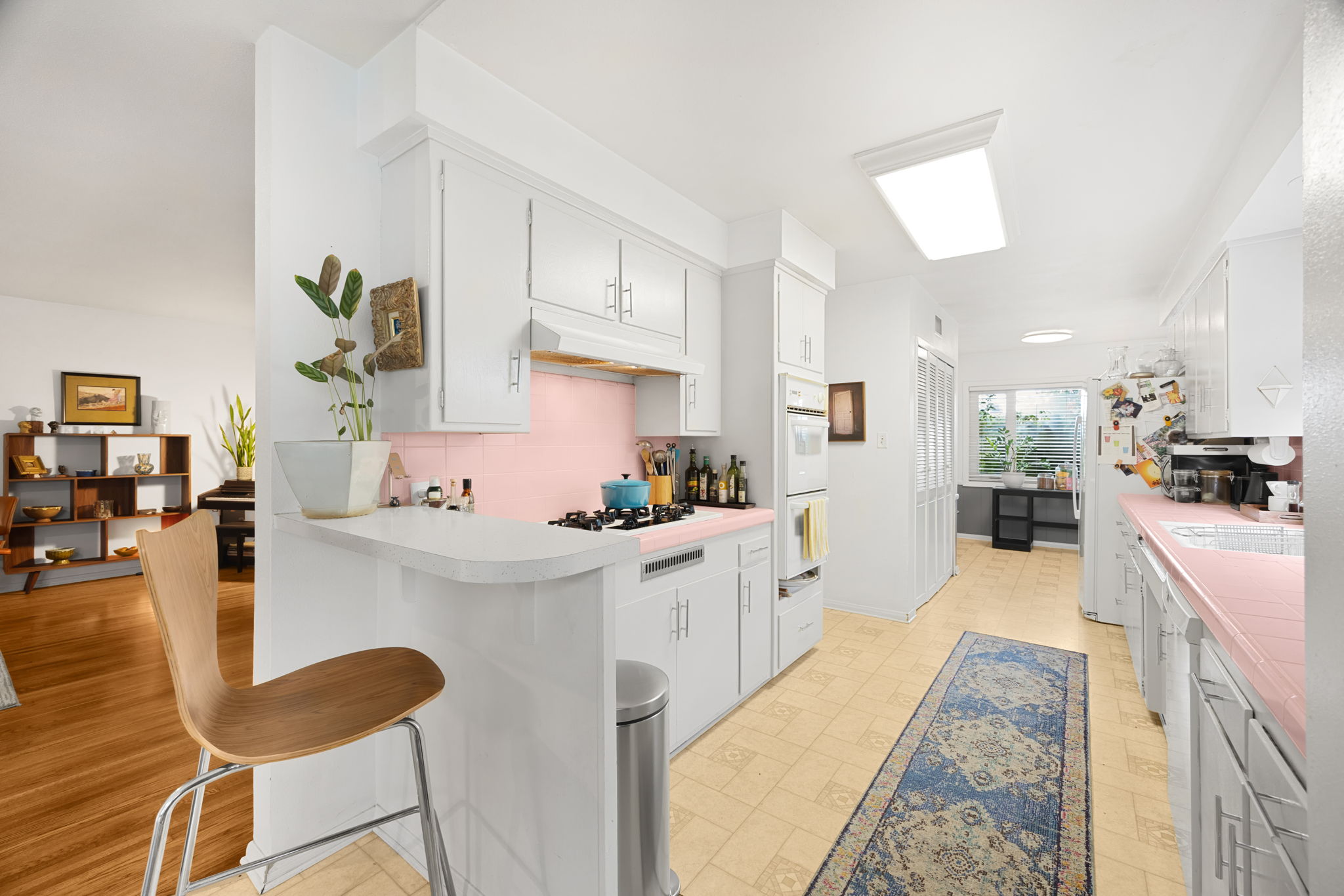 Nestled on a peaceful cul-de-sac in Valley Village, this charming single-level home offers 3 bedrooms, 2 bathrooms, and 1,727 sq ft of comfortable living space. Built in 1958, it features an attached two-car garage and a layout designed for ease and flow. Step through the front door and into the inviting living room, where rich wood flooring stretches across much of the home, setting a warm and cohesive tone. Just beyond, the formal dining area awaits—anchored by a cozy fireplace and illuminated by natural light pouring through a glass sliding door that opens to the backyard. The kitchen, conveniently located adjacent to the dining area, is equipped with ample cabinetry and a double oven, perfect for culinary enthusiasts. A quaint dinette area sits nearby, offering a lovely view of the front yard and a relaxed spot for morning coffee. Tucked between the kitchen and dinette is a discreet laundry closet, adding everyday practicality. Down the hall, two guest bedrooms provide restful retreats, each outfitted with ceiling fans for added comfort. A full guest bathroom serves these rooms, offering functionality and style. The primary bedroom suite is generously sized, featuring a walk-in closet and its own en-suite 3/4 bathroom with a shower, creating a private haven within the home. Step outside to discover a tranquil backyard framed by lush landscaping that enhances privacy. A covered patio invites outdoor dining, lounging, or entertaining in a serene setting. Located near award-winning schools, popular restaurants, and abundant shopping options, this home combines quiet residential living with convenient access to everything Valley Village has to offer.
