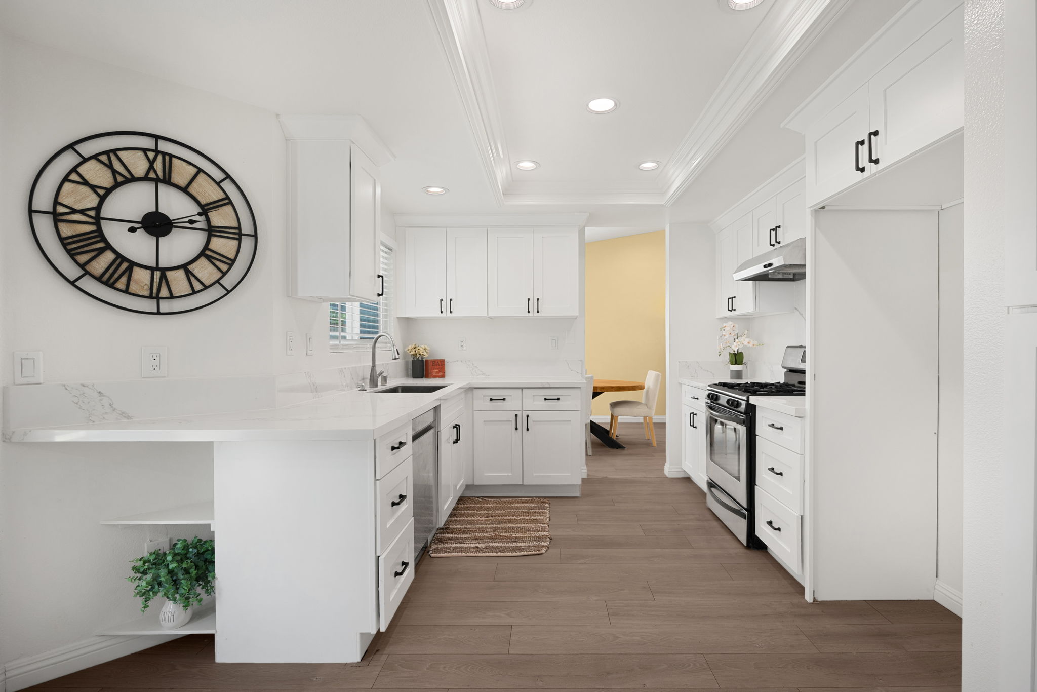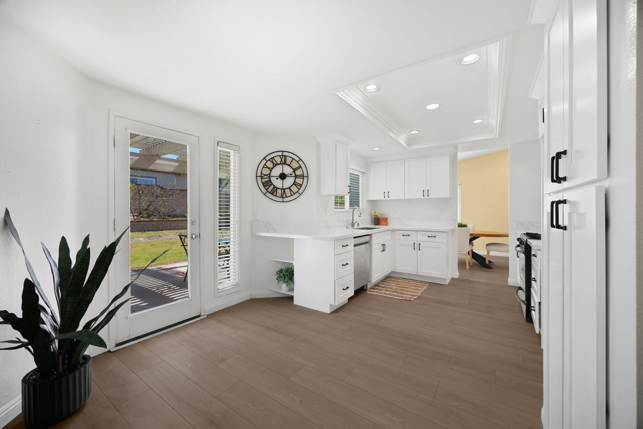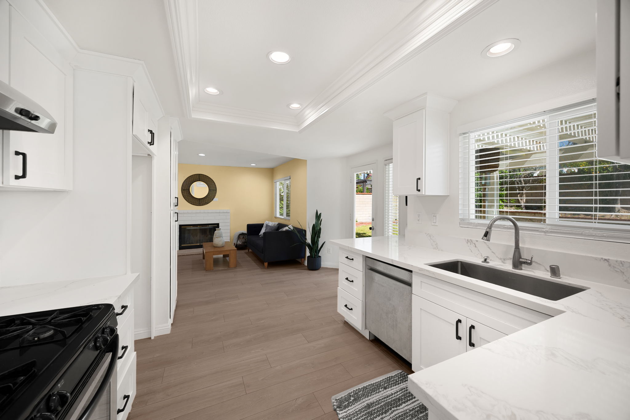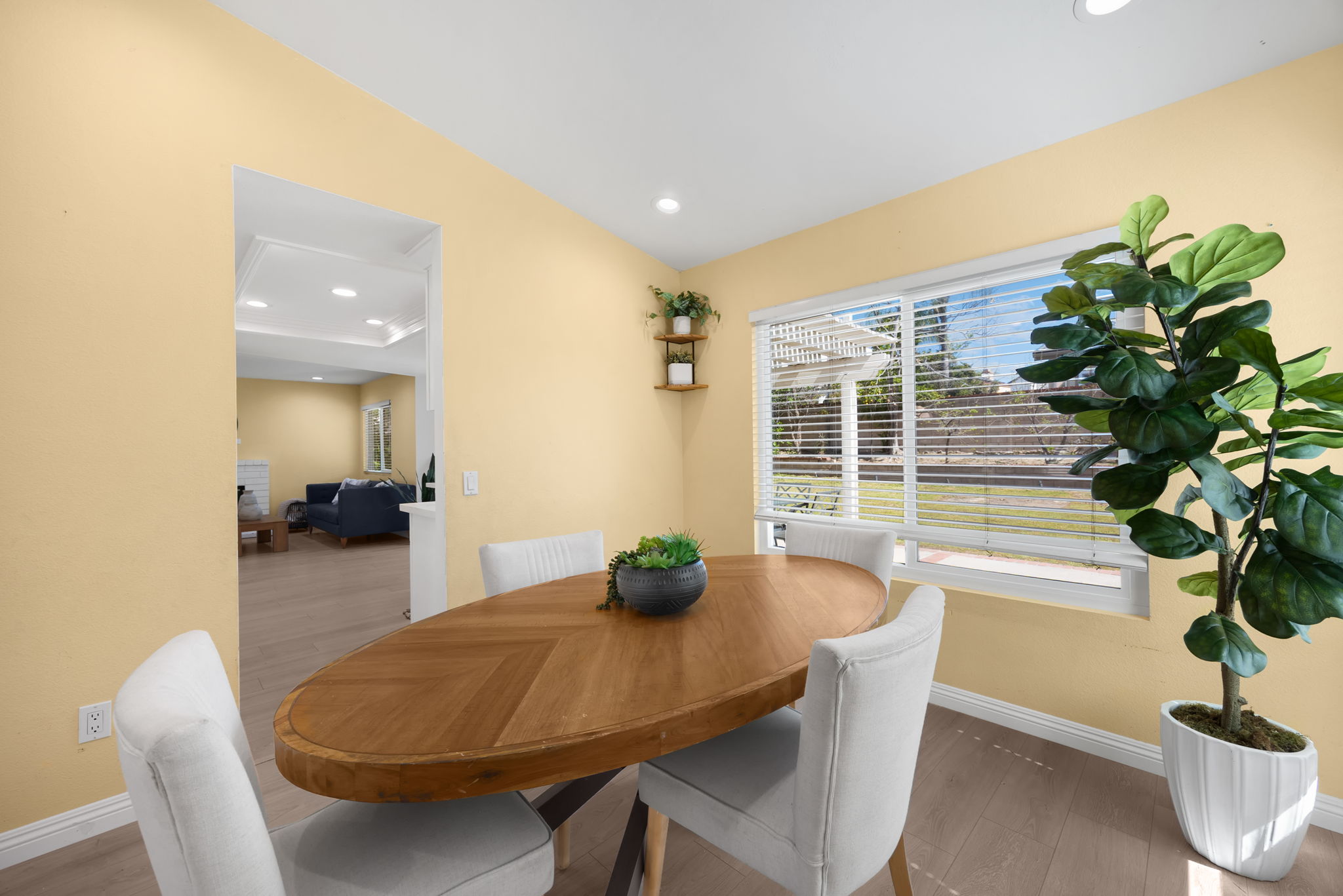 Welcome to this lovely Diamond Bar residence offering 3 bedrooms, 3 bathrooms, 1,545 sq ft of comfortable living space, an attached two‑car garage, and timeless charm from its 1988 build. Stepping inside, the living room greets you with vinyl flooring that extends throughout the main level, a bright bay window, and recessed lighting that creates an inviting atmosphere. The living room transitions seamlessly into the formal dining area, where large windows bring in natural light and the layout connects effortlessly to the kitchen. The remodeled kitchen features custom white cabinetry, quartz countertops, and a window above the sink framing a peaceful view of the backyard. Just beyond, the family room offers a warm gathering space highlighted by a gas fireplace and convenient proximity to the kitchen. Also on the main level are a guest half bathroom and a dedicated laundry room, adding everyday practicality. Upstairs, two guest bedrooms share a beautifully updated three‑quarter bathroom. The primary bedroom suite sits on the opposite end of the hall, offering an extra‑large retreat complete with a stunning en‑suite full bathroom. Outside, the backyard invites relaxation and entertaining with its large covered patio, generous lawn, and classic brick hardscape. Other improvements include a new HVAC system (1yr old), three year old roof, and a two year old tankless water heater. The location places you near award‑winning schools, great restaurants, and abundant shopping options, making this home an exceptional opportunity in a highly desirable community.