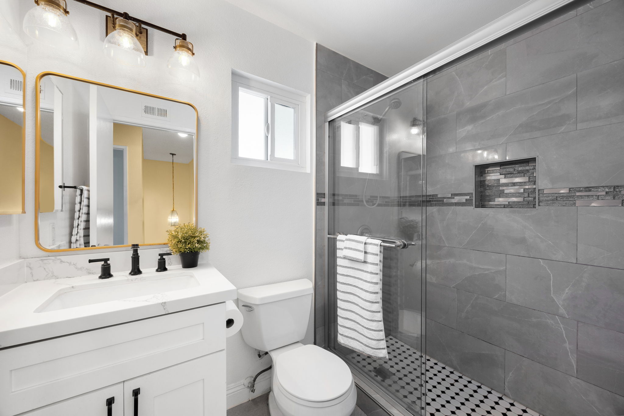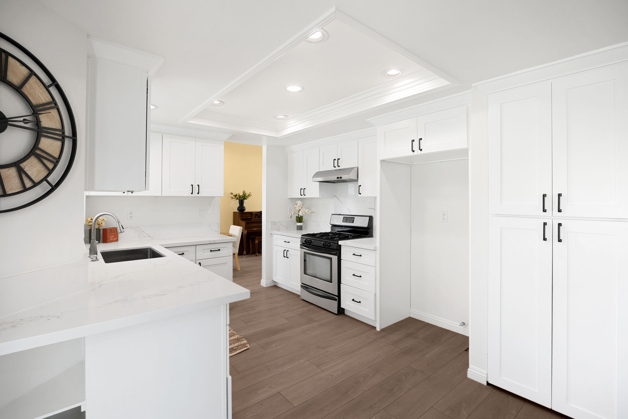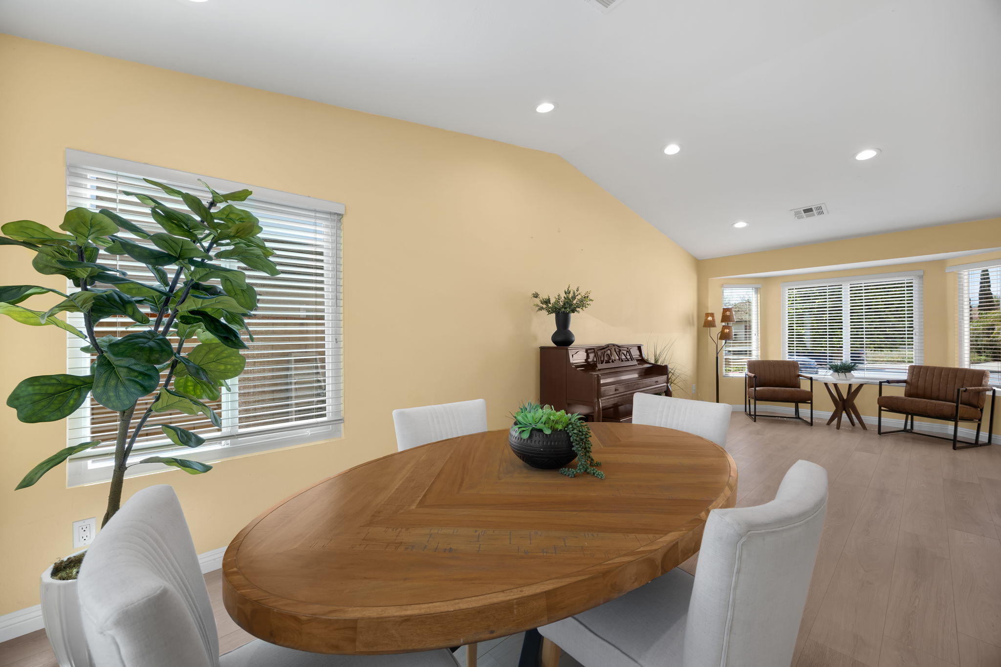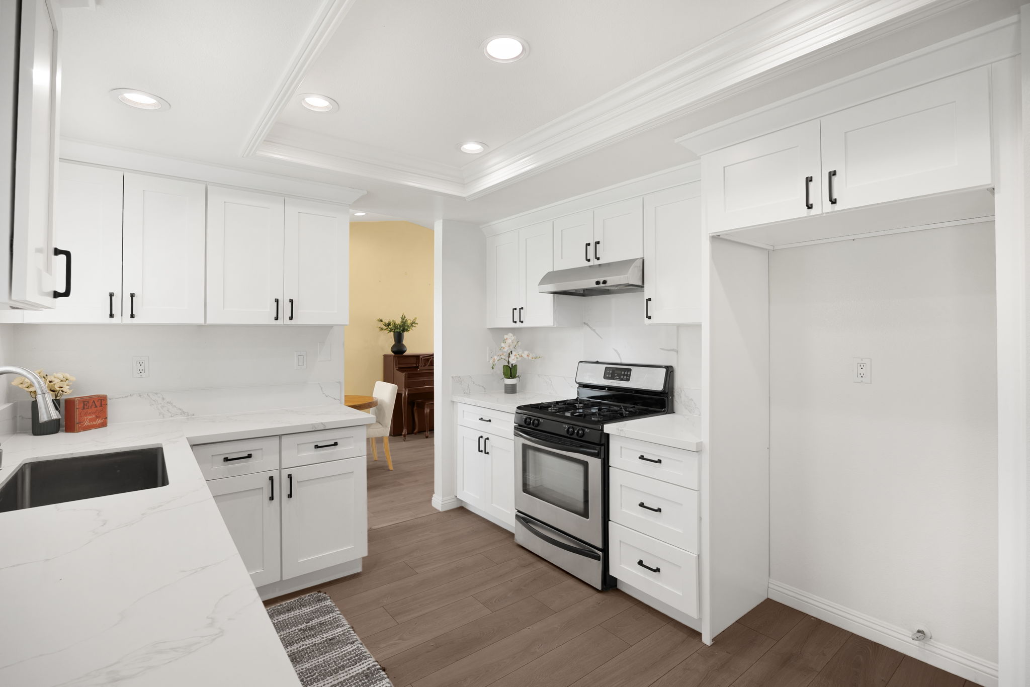 Welcome to this lovely Diamond Bar residence offering 3 bedrooms, 3 bathrooms, 1,545 sq ft of comfortable living space, an attached two‑car garage, and timeless charm from its 1988 build. Stepping inside, the living room greets you with vinyl flooring that extends throughout the main level, a bright bay window, and recessed lighting that creates an inviting atmosphere. The living room transitions seamlessly into the formal dining area, where large windows bring in natural light and the layout connects effortlessly to the kitchen. The remodeled kitchen features custom white cabinetry, quartz countertops, and a window above the sink framing a peaceful view of the backyard. Just beyond, the family room offers a warm gathering space highlighted by a gas fireplace and convenient proximity to the kitchen. Also on the main level are a guest half bathroom and a dedicated laundry room, adding everyday practicality. Upstairs, two guest bedrooms share a beautifully updated three‑quarter bathroom. The primary bedroom suite sits on the opposite end of the hall, offering an extra‑large retreat complete with a stunning en‑suite full bathroom. Outside, the backyard invites relaxation and entertaining with its large covered patio, generous lawn, and classic brick hardscape. Other improvements include a new HVAC system (1yr old), three year old roof, and a two year old tankless water heater. The location places you near award‑winning schools, great restaurants, and abundant shopping options, making this home an exceptional opportunity in a highly desirable community.